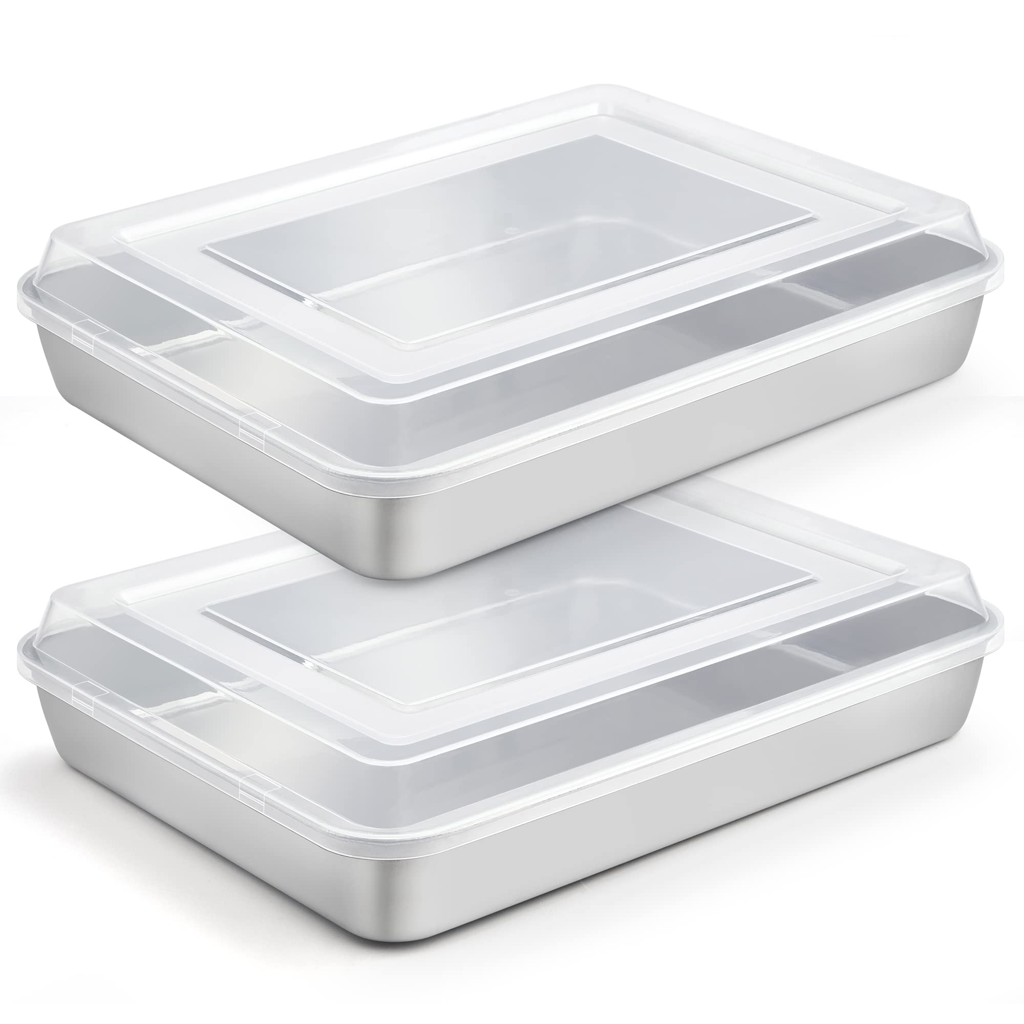 TeamFar 2-Pack 8" Stainless Steel Square Cake Pans – Non-Toxic, Sturdy & Dishwasher Safe